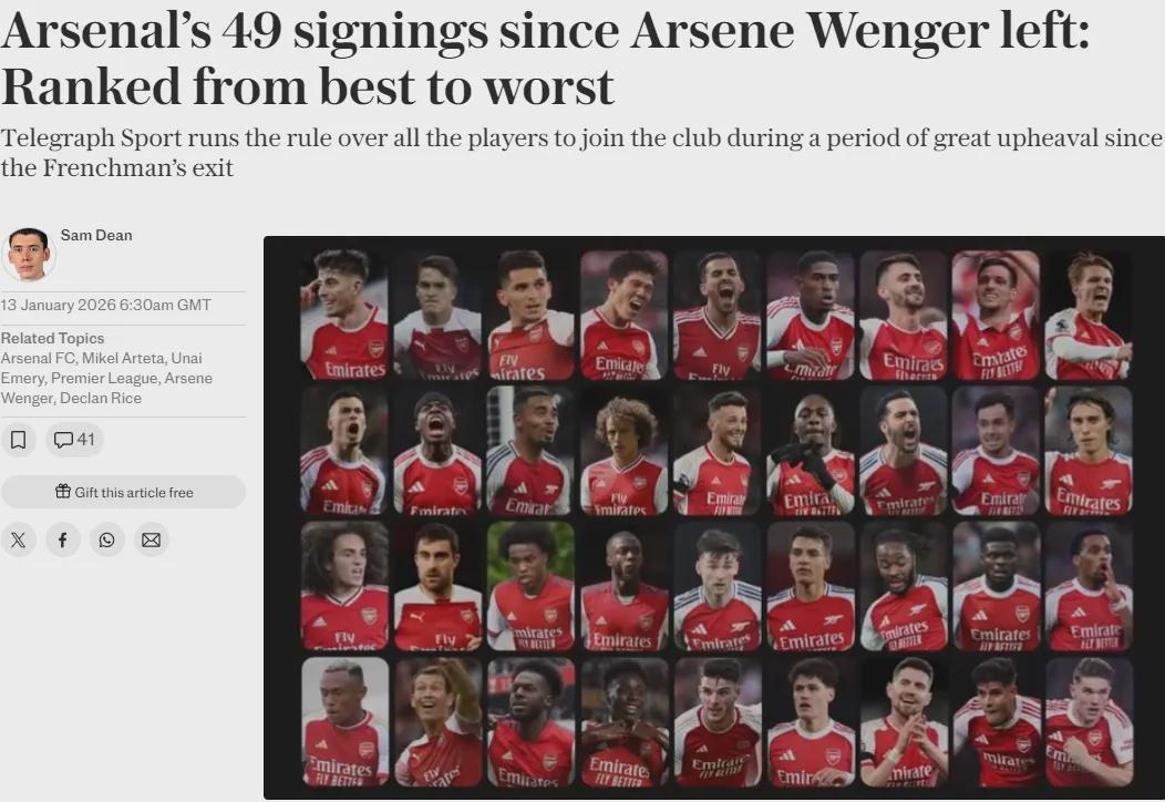 电讯报统计,自温格2018年夏天告别之后,阿森纳已经在转会市场上花费了10亿英镑以上,总共签下了49名球员。